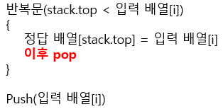 따라서 stack의 top과 입력 배열[i]의 비교 과정은 반복문의 조건으로 두어야 합니다.